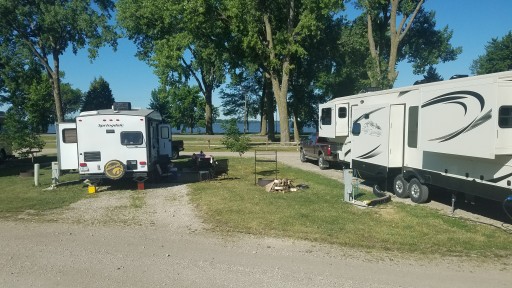 Nice campground with level sites, full hookups, and plenty of room. Nice views of the lake and convenient access to the lakefront trail.