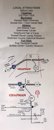 Very well maintained park with helpful and friendly hosts. Great location with easy on and off, near Ft. Riley, Abilene and Eisenhower Museum and Library. Sites are tight but manageable Facilities (laundry, showers, dog park, playground) are small but in great shape. Would stay again.