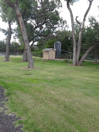 Very clean, well managed park. Many available tornado shelters for those times. Grounds are manicured grass and sites are few and far between with lots of trees around. Staff gets 5 stars. Very serene with light freeway noise and moderate train noise. Birds, bunnies and squirrels for your constant viewing pleasure. Water and electric are as required. Showers and bathhouse is as required, no frills.