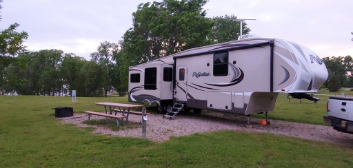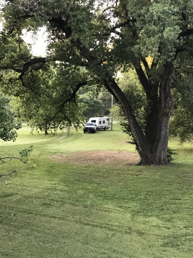 Arrived after dark. No defined campsites. Primitive potty. All grass. Several poles with 4 30 amp outlets kinda sorta indicates where to park. Crossed the ped/bike only bridge to walk thru downtown Lindsborg. Found the museum office to offer up my $7. For $2 more, ended up spending over 90 minutes in there. The water powered technology in the mill is fascinating. Very pleasant experience.