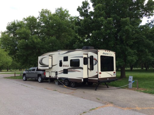 This is our second stay here. Beautiful park with large trees and spacious camp spots. Utilities laid out a bit different..you need to pull in as if parking backwards, then run water/electric under trailer. Self pay is somewhat confusing as posts in front of each spot has a red R which makes you think they might be reserved, but we found they were not.