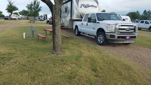 After a long windy drive from the Cheyenne Mountains, this was a sight for sore eyes. Lynn was very nice and accommodating. Two nice areas to play with your fur babies. One was enclosed and the other was open. My dogs loved it after the long drive. Level sites, clean, well maintained. And I never heard the traffic in the trailer.