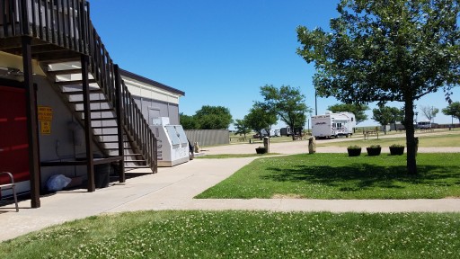 Stayed for 3 nights. Park is better suited to overnight stays. Great amenities ~ pull through, big rig access, full hookups, wi-fi and cable. Not a lot nearby to do. In the middle of Kansas ~ very flat with little/no trees to block wind and it was VERY windy when we were there.