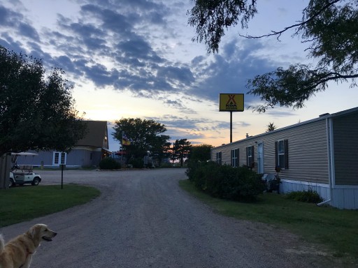 Super-nice hosts, level site (didn't need any blocks), clean campground. Fast wi-fi! Easy in & out to our pull-through site. There were 2 sewer hookups at the site, one middle, one toward back, so no stretching or daisy-chaining the slinkies. Quiet, even though close to I-70. Short walk to the Brazen Bull for dinner - quirky little tavern-type place, good basic food.
