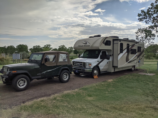 It was a great place to pull off the road and stop after driving in the wind all day. Not very friendly owner, but she lives in a horrible place with all this wind. Can you tell I hate the wind? Sites were not really level, but the wifi and cable are good here. She didnt want to give me the discount for Route-66 because all I had was the email, the card is probably in our mail pile at home. She grudginly gave us a military discount. Not sure we will stay here again if we have another choice.