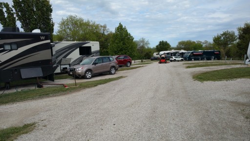 Very conveniently off I-35, yet out of view with trees and a little hill. It’s small but very well kept and pretty. We stopped overnight on a Sunday and were having major electrical problems, to the point that we thought we might be stranded until we could get a mobile tech to come help us. Amber, the host/owner? was extremely understanding and helpful. She told us we could stay as long as needed, gave us contact info for area mobile rv services, and even gave us a handful of quarters so we could use the showers (hot water heater was one of the things not working). Yes, showers are coin-op, but very clean and nice! Didn’t use the laundry, but again very clean and nice.