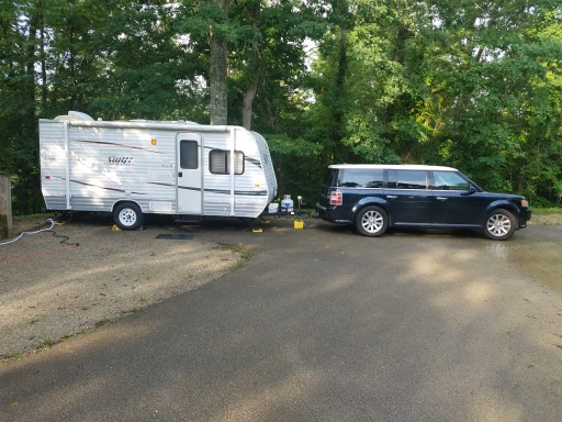 Worst state campground ever! Arrived just after dark. Camp hosts met us and apologized first thing for the condition and layout of the campground. Seems to have been designed for car campers in the 1940s. Counted six sites in a row next to the bath house that were only 8' wide by 33' long with about 6' between them and graded 6 degrees from front to back. Our site was large, but nowhere near level. When we parked on the most level spot, our door opened on the road and the electrical connection was 25' away while the water connection was 45' away. Tent campers appeared to have some pretty good sites, but all of the RVrs we spoke to had similar complaints. Will not return, even though the falls and hiking are worth seeing.