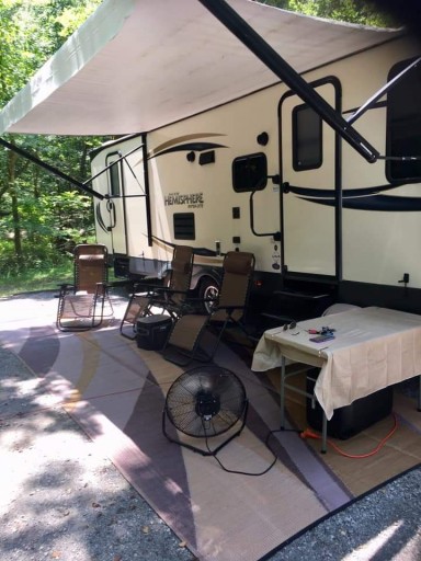 Camping sites are not for any campers 22 feet or more. They are small and sloping, not very level at all. We have a 30 foot camper, had to push our back end tires all the way to the back of paved site. Had to go 6 legos up on right side to get level and buy more legos for our back stabilizers, which were 10 legos high and used chocks as shims to get them somewhat level. Very Jinky. The front was down so low, our front bottom step was scraping the pavement. Sites are beautiful, but have lots of trees surrounding it, that it makes it hard for longer campers to maneuver into their sites. Employees are nice and friendly, but they are not there all the time and neither is the camp host. Was able to move to a better site halfway through our stay, but site was still not very level.