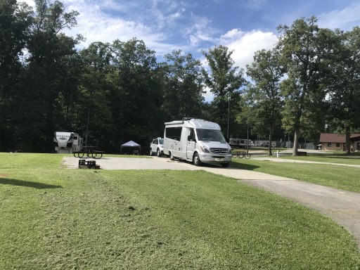 This was a one night stay, on the way from Florida to Ohio. The park is right on the edge of town. But what a pretty find. Very well maintained. Bathrooms clean and modern. Spacious level gravel sites. Ours had full hook up. We came in on Monday night. The park was wonderfully quiet.