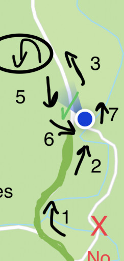We booked on Airbnb, and were given directions that we couldn’t follow. I’m including them here for you, study them. Also, look at the marked up map, for you to read before you get near. You will lose cell service before you get here.