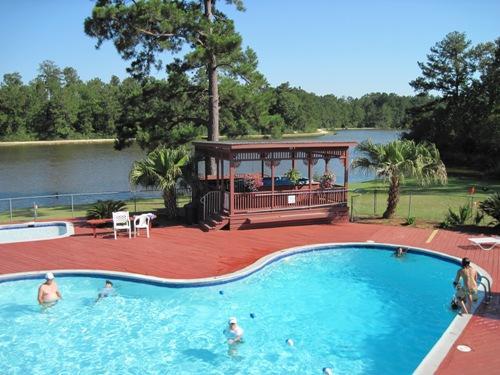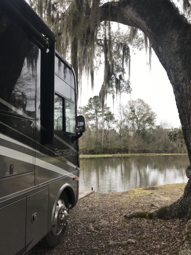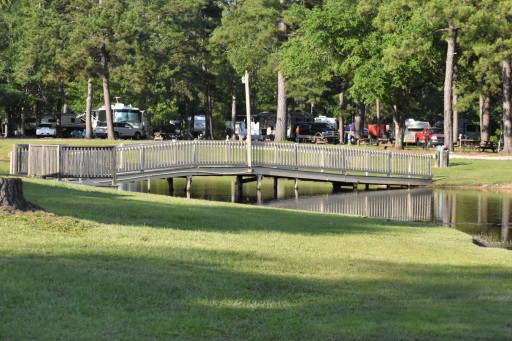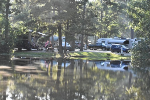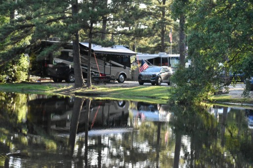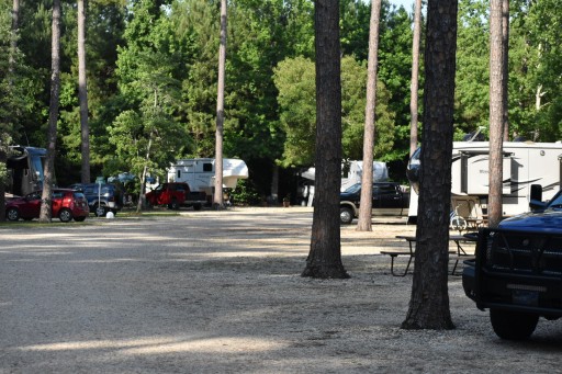 This is a typical coast to coast members RV park - unlevel gravel parking jammed in on top of each other in every direction. I could touch the RV next to us from my steps. Luckily our neighbors were friendly. Lots of tall pines and nice walk around a pond for our dog