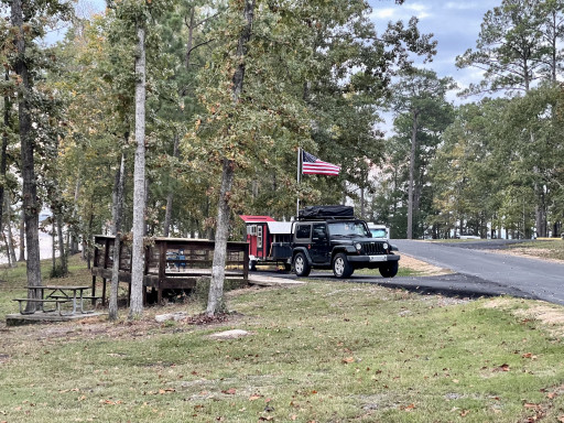 This is our first time here in about 7 years. The roads have deteriorated alot as have the site areas, ground level to pad. The camp host makes frequent rounds and it is very peaceful. The kids have enjoyed the playground and the beach and there are lots of trails around the park. If you want good Lakeview I suggest 27 thru 41 on the big point, the rest are nice but there is alot of vegetation blocking you. All of the pads on the lakeside from 44 to 56 aren't level but are still manageable. Make sure to bring your pit if you want to grill, there are no park grills on these sites. Water is clean and power is stable. Very nice boat launch. Don't forget anything, the closest real store is 20 miles away. Plenty of shoreline for fishing and there are floating docks all the way around the point. Our picnic table was below the hill and not very convenient. The road in was in bad shape and very hilly, hope your brakes work. Walk the trails, they are nice.