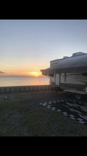 This is a no frills park but an awesome value. Right on the Gulf. Not much privacy between sites but a beautiful view out onto the water. There was only two other rigs while we were there in early December Think parking lot by the beach. It was only $14 a night with full hookups including sewer. I’d be careful if there was any high tide or serious rain forecasted as the sites are about a foot over the high tide line. No laundry and the bath house claims hot water shower but not this week. Check first because they are doing some pier work and may be driving some piles. If no pile driving, we would go back for the solitude and the view.