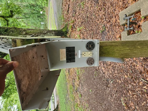 Full electric and water hookups. No sewage. Have dump station at exit. It's a nature preserve. There are picnic tables, grills, no fire pits. The insects are very bad. Flying roaches and mosquitoes are terrible. Need to wear OFF.