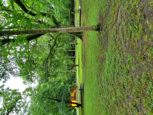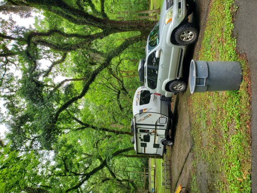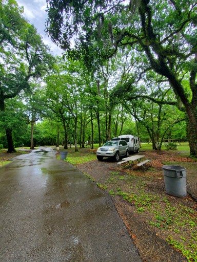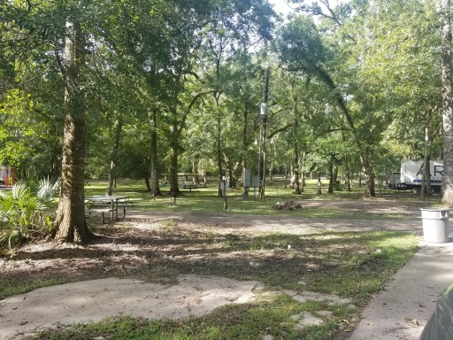 Pros: Even slabs, w/ full hookup (-sewage(dumpstation at entrance w/ flush hose), shopping center is a 5 minute drive (off of i10), moss st (5mins) and Ambassador (<15mins) are plenty of local eateries, bars and pubs. Nature trail and actual park all on/near campgrounds. Mosquitoes are as bad as expected. They get worse at night. Great campsite though. At $28 a night its cheaper than a hotel. And no additional charges for dogs. Be sure to bring cash or checks!