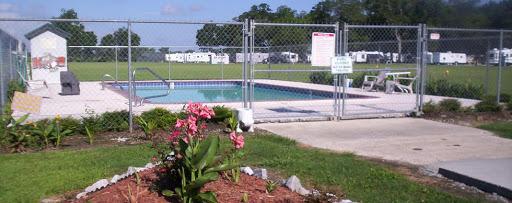 Spacious RV parking. There's a pool, fishing pond and basketball court. Be careful near the pond resident gator may be lurking nearby. There's free cable hookup and free wifi. The showers and restrooms are immaculate. The sites are very level. All I had to do was unhook from the car and lower the trailer down! They charge $35 a night, there's also weekly and monthly rates. I stayed a month.