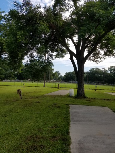 Something for everyone. Baseball, softball, kickball keep away (soccer), basketball, tennis, swimming pool, picnic tables and pavilions. Even a high school football stadium. Oh, and bunches of grass campsites scattered around in various sections of the park with an electrical pedestal with two 30 amp outlets and one duplex 20 amp outlet. Also a water pipe with one or two hose bibs. Be prepared to share a pedestal and a hose bib.