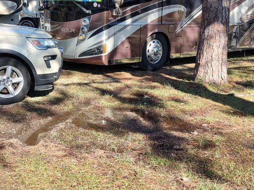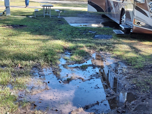 This campground is under new ownership. They have a lot of work ahead of them to make it nice. It's hard to see the entrance sign and not easy to navigate the entrance itself. Perhaps a flag of some sort to get campers attention as they get near the entrance would help. Many campsites are in dire need of repair. Suggest they start with the worst ones, bring in some gravel, there's too much dirt/mud!! Number the sites!! I rarely comment on an RV park, but this park needs to address the sites where water stands for days after a rain!!