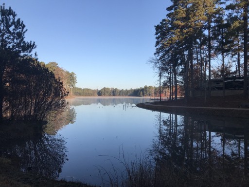 After sleeping in RV parks beside the interstate for a week, I was looking for a quiet spot and found this park. It was a Wednesday and we had absolutely no one camping close by. Beautiful lake with a trail around to walk the dog. Campfire rings, lots of trees and quiet! My dog and I explored the woods and had a great time. Bathhouse was clean. I saw a great playground and a beach there as well. Close to town and MANY excellent restaurants in the area. We ate sushi at RAW. Wonderful! Also, laundromat now too far away.