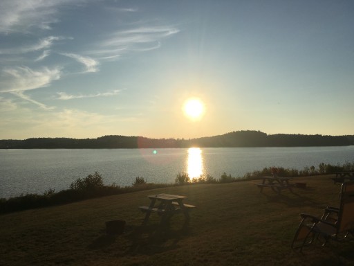 A lovely smaller campground with an excellent view over the bay at all sites, not tightly crowded and accommodating staff with kind and respectful campers. We stayed two nights and then went over to Eastport for a night and wanted to go back to Sunset Point for another night unfortunately sold out and we can see why. The opportunity to have pots and utensils to cook lobster and crab was a bonus and morning coffee on the front porch was a nice added touch Highly recommend!