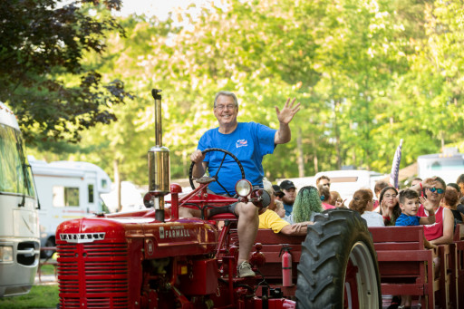 Our pull thru site was tight and still couldn't get level even on stacked 2x6's. Our site was missing the grill grate on the fire pit which was disappointing - some sites had them, some didn't. The kids enjoyed the small playground and the jumper pillow, and the dogs liked the fenced in designated dog park. If your child's "swimmies" are not lifeguard approved then you cannot use them in their pool. Overall just a small, average campground with minimal room for your tow vehicle.