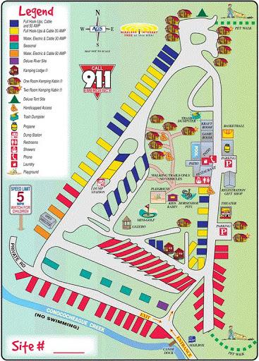 This place is very poorly laid out and maintained. If anyone is attempting to register and you want to go to your site good luck the only access you might be able to use is occupied by staff parking in it. I think that they are to lazy to park properly there response is that's an employee's car ( no kidding). The first night we were there they had a loud outdoor live band with no notification when we checked in, or on there schedule of events (by the way they could sure ruin a song). When I called the office about the noise they were making I was told that they were going to play until 9 PM, besides quit time is 10 PM. Avoid this place like the plague. Small unlevel sites, rude staff.