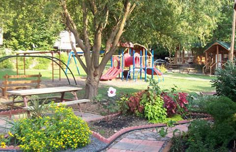 Lovely campground not too far off the highway and along a creek. Beautiful landscaping, nice playground and pool for the kids. Extremely nice bathhouse. They also deliver pizza and wings to your site.