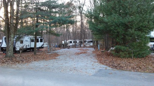 We stayed here to attend the Preakness. Its about 40 minutes from the track so was convenient. Beautiful pool and nice playground. Loads of trees, very shady, but spots are close together. Though it has large pull throughs, turns and small branches make it tight for larger units. We did manage to get a 35' plus toad and a 37' plus toad in without a scratch, but it was tight. And if you plan on going in and out they require a $40 deposit to get a gate card for reentry after 8pm.