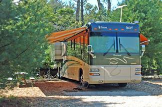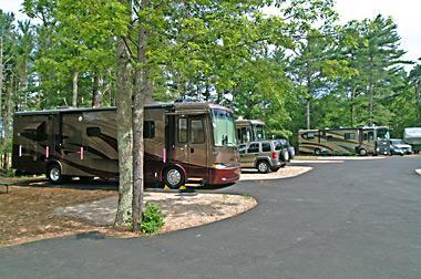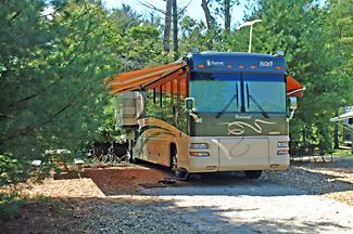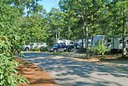 Stayed for a week. Nice pleasant campground and close to everything. Wifi only at the club house and not a lot of cable channels. Bring wood for your stabilizers because they are required. Lots of mature trees and asphalt pads. Big pools and play areas and staff is very helpful. They do talk funny though.