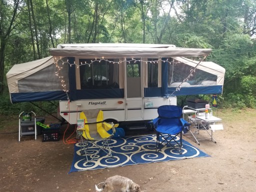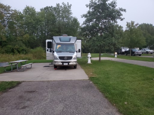 Our first time camping here. Sites are decent, though more grass would be nice. Bathroom/shower kept up really good. Trails galore for walking or biking. Lake just down the road from the camp sites and was clean. Used the boat launch area, just down from the beach, to drop in the kayaks and had a peaceful time paddling around the lake. The staff was friendly and helpful. Park was clean and quiet. Bug spray is a must. We put up a fly tent with screening and it was quite tolerable. There was a mixture of RVs and tents throughout and little cabins available for rent, too. Nice dump station, as well. Overall, we were happy with the grounds.