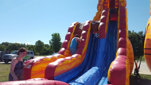 Large play ground with two giant jumping pillows
