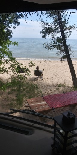 There were 5 RVs, 3 vans, 2 semis and a very technicolor bus also staying overnight.