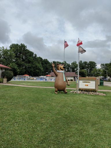 I want to give this 5 stars, but the standard full hook up sites are very narrow. You're paying premium prices so we expect the site to be a bit bigger (if you have slides they almost touch with your neighbors). The positives: great playground, fantastic activities for the kids, the 2 pools are wonderful, clean bathrooms and family bathrooms/showers, the staff are great and the location in Frankenmuth can't be beat. We got to meet Yogi and Boo-boo bear too. We'll be back (but maybe get a deluxe site).