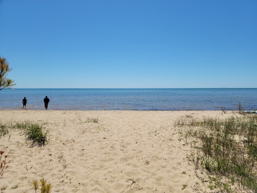 This campsite is nestled in a beautiful section of state forest at the end of a six mile dirt road. The campground has access to a small sandy beach on Lake Michigan and has a few hiking trails as well. We saw lots of wildlife, including a coyote and a porcupine! The sites are medium to large sized, and the dense woods add a good amount of privacy. Many sites are level or fairly close to level. Great place to stay if you're looking for some nature!