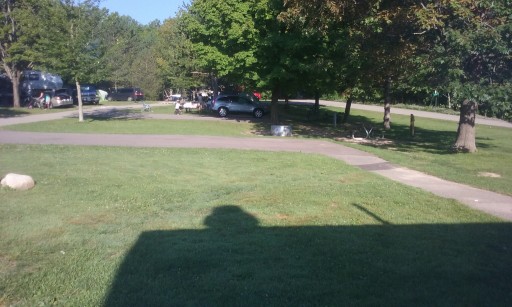 Lots are quite large but most are on a slope, ( we were site 49 sloped front to back ). Bathroom and showers were well maintained and clean. Nice hiking trail and beach. Neighbor site had difficulty backing in do to the placement of speed bumps.