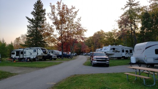 I read other reviews saying the sites were really close together. We didn't experience that at all, in site 29, but I also checked the dimensions of the sites we were interested in before booking. The one issue with site 29, and probably the site directly across from us, is that you're next to a culvert and there is a fence on either side of the road which makes backing in slightly more tricky (easy enough to maneuver with our 27 ft trailer). Since I saw reviews saying the bathrooms were closed, I called the campground to inquire which ones were open. I was told the one closest to site 29 was closed, but when we arrived it was.open and fully operational (and very clean). We thought the campground was beautiful, with the fall colors, and enjoyed the views of the lake and tress from the beach which was a very short walk from our site. There were a ton of dogs at the campground, and they all seemed to be well behaved. We hardly heard any barking. We would stay here again.
