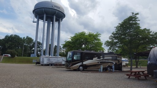 Very nice park. Only 24 spots but very level with gravel so no dust. Asphalt paths around the lake very nice a park up the hill with gazebos tables and kids park.