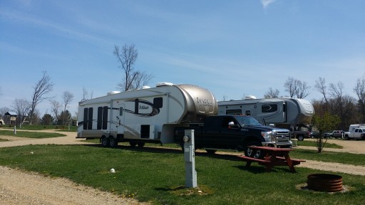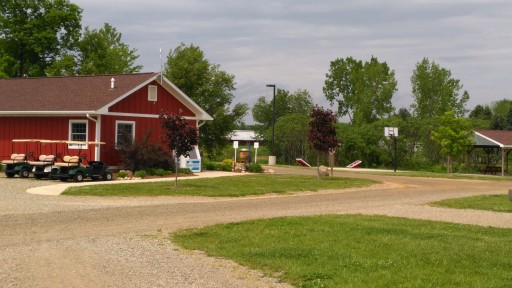 This campground is very nice. It is behind turkeyville, which is a restaurant that serves, you guessed it, TURKEY, and a very cute, very large general store. The campground appears new and clean. It has large open sites with small trees and lots of grass. Many sites were pull through and accommodated our 38ft fifth wheel just fine. They have a very nice clean bathhouse and the pool wasn't open when we stayed but it appeared pretty nice sized. It's not too far for FireKeepers Casino. Overall we liked this campground a lot and would return.