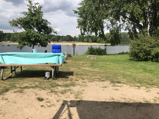 Dirt site not very level. Restroom and separate showers just passable. Very worn looking. Nice view of the lake. Surprised that for a one night stay I had to also pay 2 days of visitors fee of $10/day. Camping fee of $27.00, $8.00 for online reservation and $20.0 for a 2day visitor fee. Not coming back.