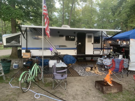 sites are extremely small. we paid for a premium full hook up site and couldn't even put out our awning because it would have touched the camper next to us. firepit very close to campers, activities and announcements made over a pa.. throughout the park starting at 8am. decent amenities but extremely over priced.