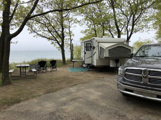 One of the nicest state parks so far for us! We had a paved, woodsy site (124) with some shade near bathhouse, have small 22’ class B. FYI, nicest paved sites to reserve early on the lake with no dunes are 65, 66, 67 & 70. 45 is paved and near bathhouse with lake view. Best value for us out of staters is the park pass. $33 for one year. Been all over MI for 3 weeks using county and state parks. Bathrooms are clean and lots of showers for de-sanding after beach days!