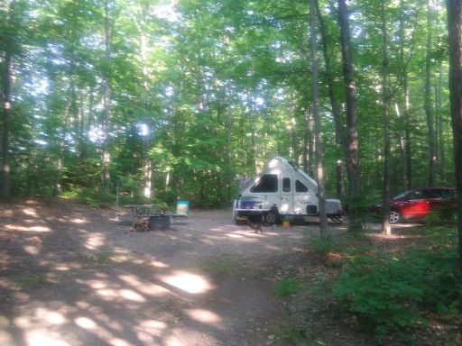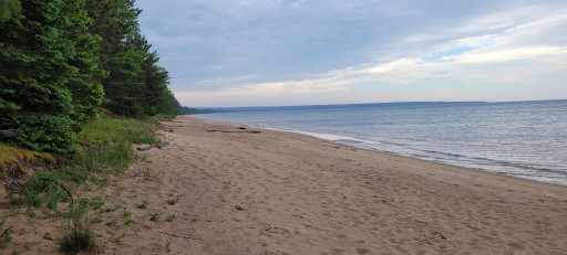 Small campground right on the lake pets welcome. Miles and miles of beach to walk . Mostly shade solar not so good . No power or dump stations hand water pump very clean outhouse.