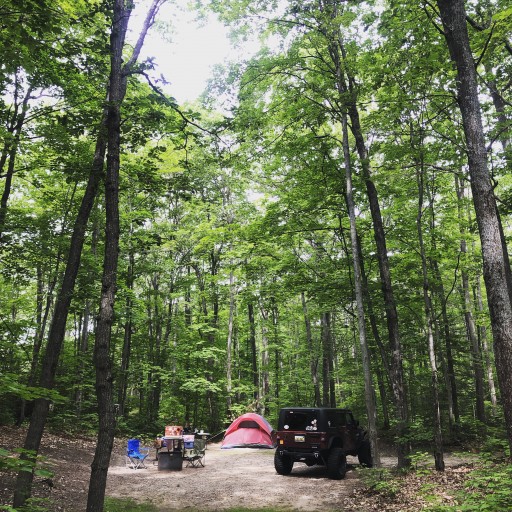 Heavily forested; sites are well separated on the backside of the loop; a little closer on the front by the lake. Water stations available, no power provided. Clean, well-maintained (non-smelly in July) vault toilets. Hosts on site.