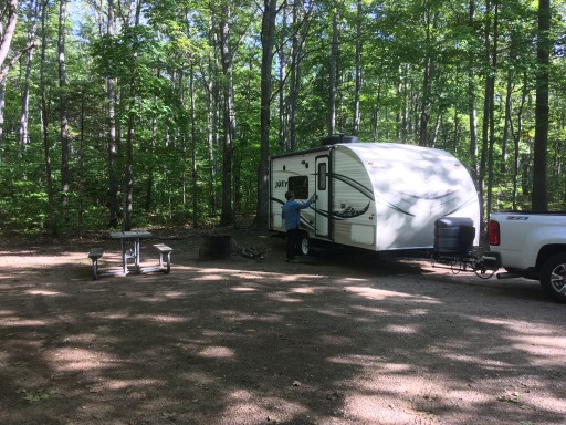 We were here in September, pleased to see very few other campers. Sites were spacious and level. Water available at central location, not at each site. No electric or dump station. There’s a very nice beach as well as a boat ramp. Clean with heavily wooded sites. Host on site, as well as a marked hiking trail. We liked it very much.