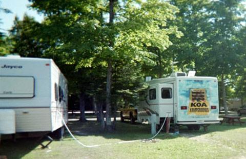 Was okay for a one night stay. Kids enjoyed two playgrounds! The site was not completely level, and the sewer hookup was too far away from other hookups. The shuttle to the Mackinac island ferry was quick and convenient.