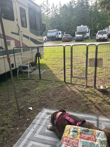 We really appreciated the friendly and helpful staff. They helped us re-hook on to our 28' trailer that we left up front on a gravel service road in front of the campground to store but had some trouble maneuvering because the power lines were too low. The park itself was a little tight to maneuver in a 43' and the spots desperately need fresh gravel. They had a lot of rain and it was a mess with the lack of gravel. There are shuttles to the ferries which is helpful.