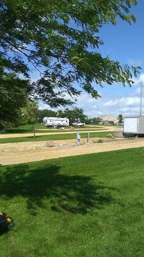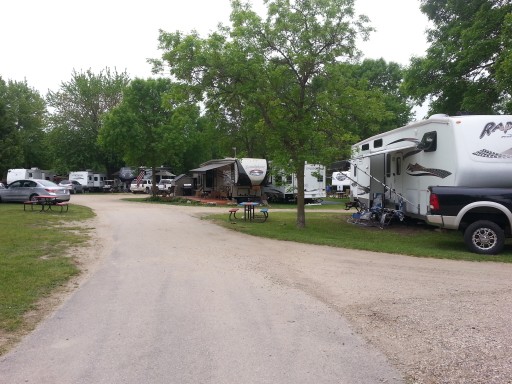 Decent park. Caters to families with kids. Lots of play areas. Not over the top clean and lots of permanent campers parked for the summer. Easy highway access, paved main roads, gravel road to grass site. Next time traveling through going to try another place to see if its better. Staff was friendly.
