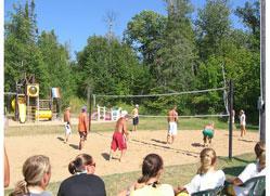 Right on the lake. They have kayaks and water toys to use for free and a beach.