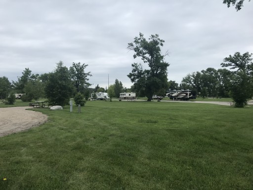 This was once a neighborhood before the flood of 1997 wiped it out, as a result the streets are wide and the sites are all pull-through with full hook-ups and 50amps service, and good free WiFi. There are showers & clean restrooms. Great place to have a bicycle and plenty of trails nearby. You're within walking distance of the movie theater.