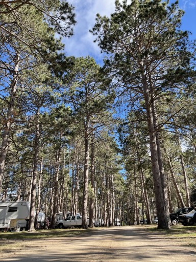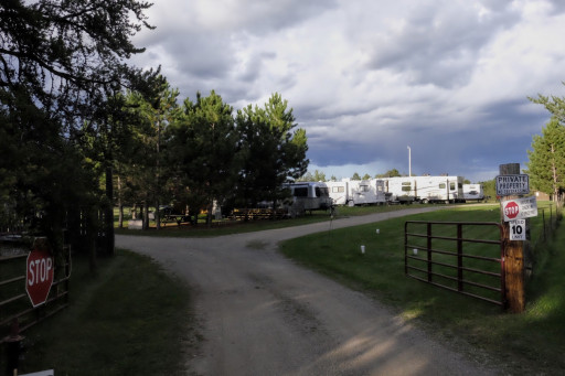 Eight total spaces here, and most if not all are usually taken up by seasonal RVr's here for the summer. We happened to get lucky and were able to get the single opening, albeit mid-week, after calling ahead. We're in a 38' class A with toad. Unhooked at the office. The nice gentleman who owns/operates this establishment parked us. Easy going guy. W/E/S, 50a. Four bars VZ 4G. A handful of OATV channels.